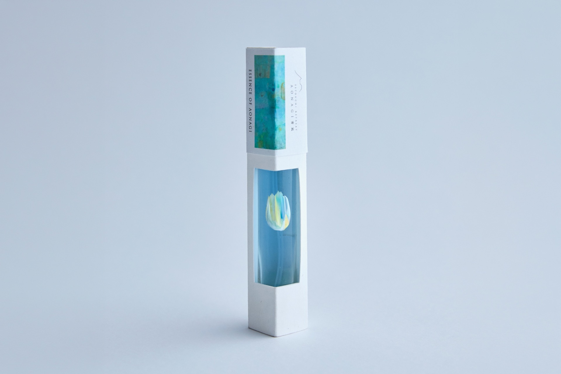 完成したフレグランスは瀬戸内リトリート 青凪を象徴する青色。